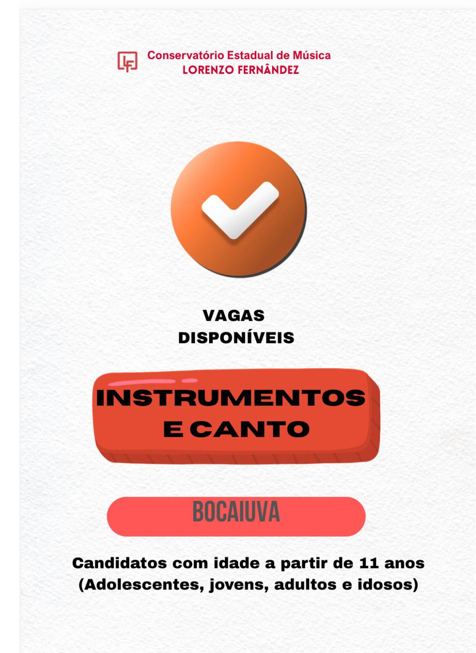 BOCAIÚVA - VAGAS MUSICALIZAÇÃO